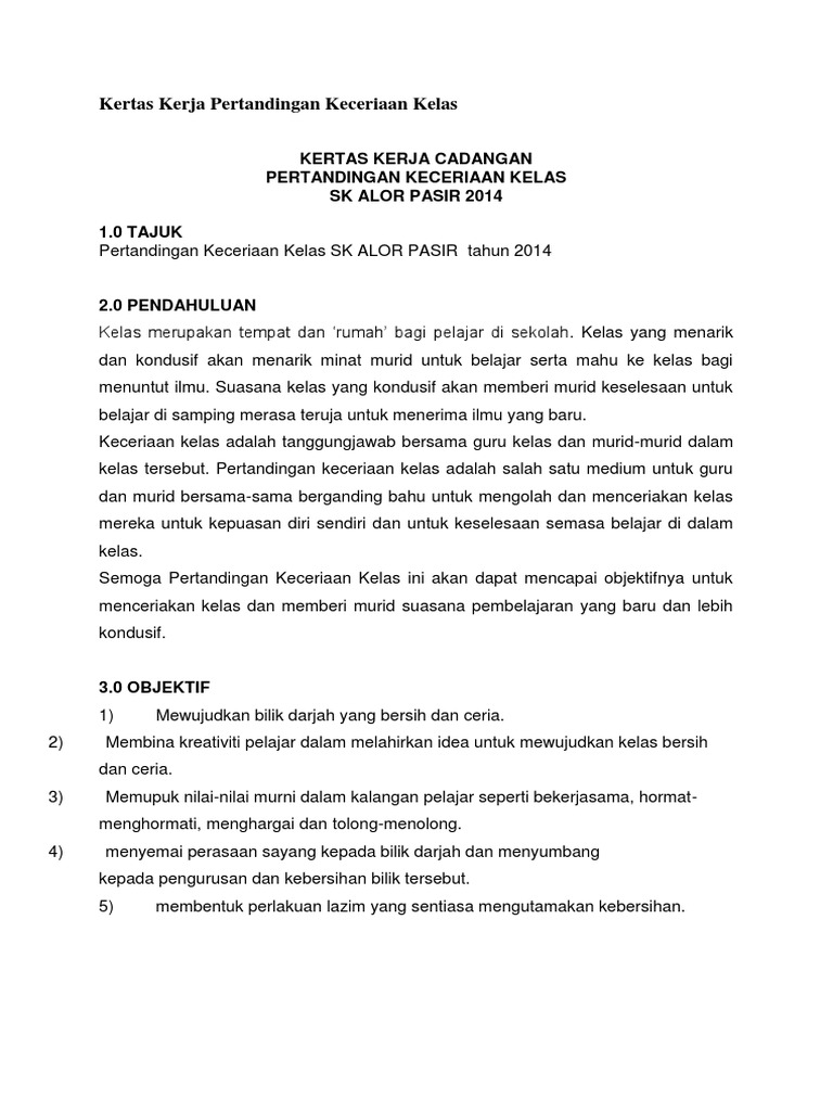 Kertas Kerja Pertandingan Keceriaan Kelas Pdf